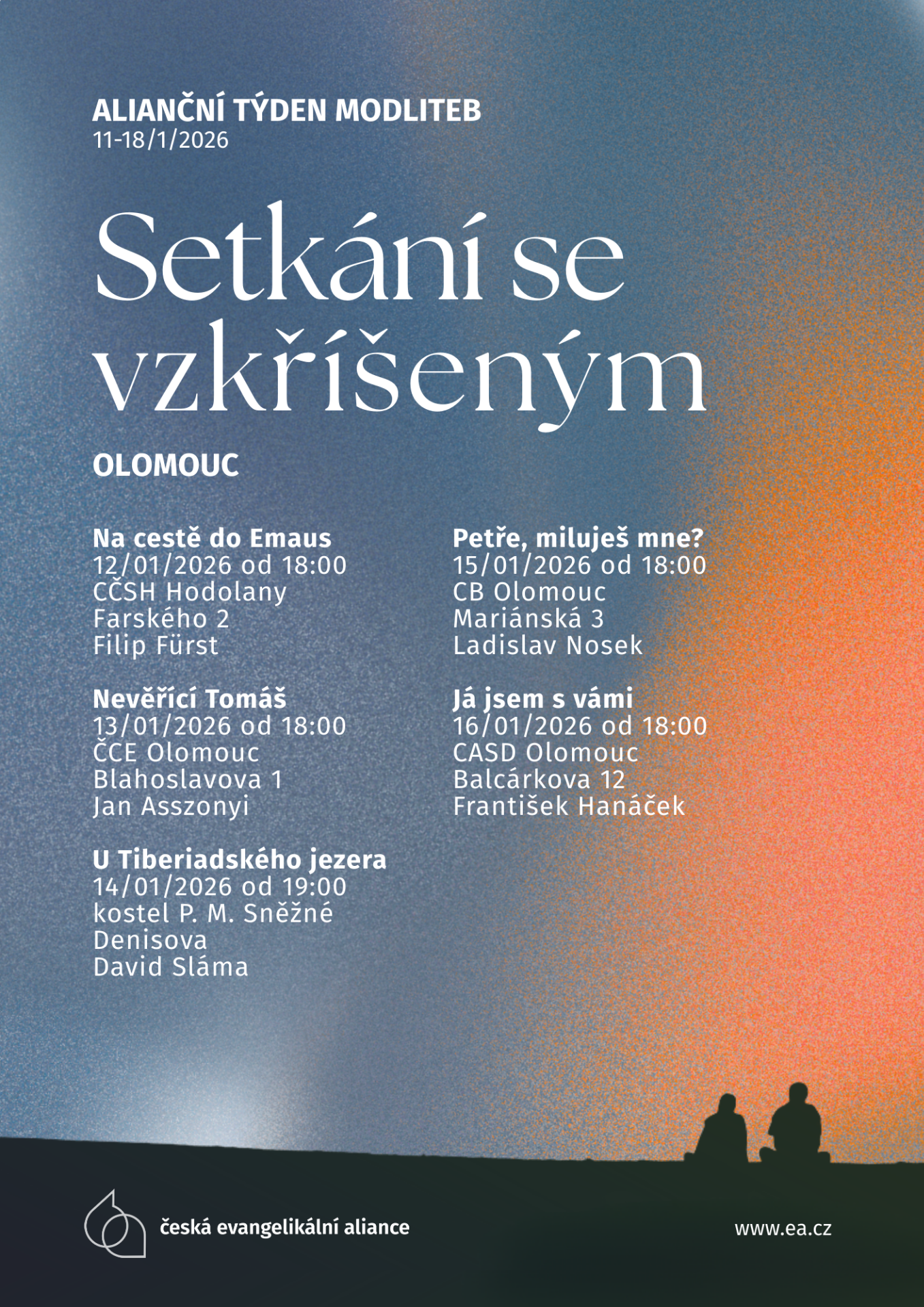 Přijměte pozvání na několik setkání v prostorách různých církví v rámci aliančního týdne modliteb.